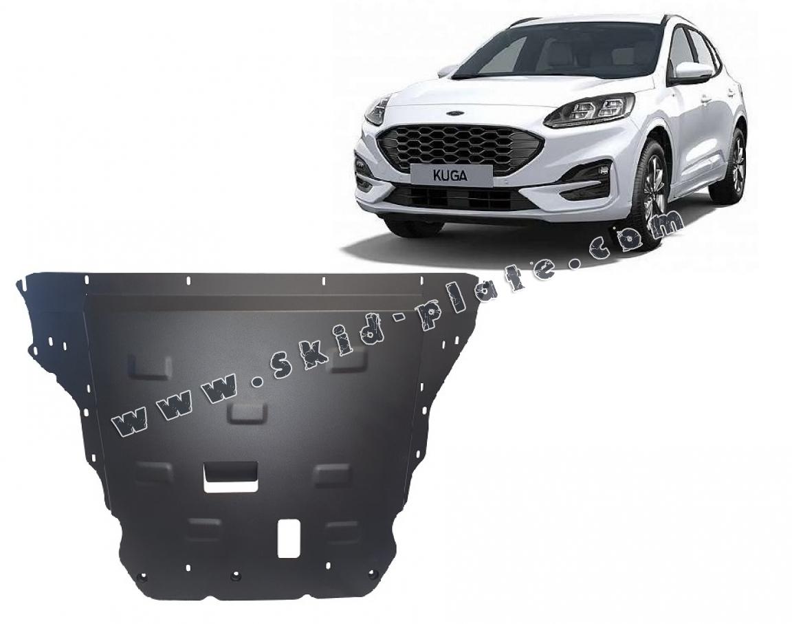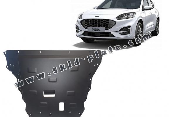 Skid plate for the protection of the: engine, gearbox, radiator, front bumper The skid plate is new and fits perfectly for all versions of Ford Kuga manufactured between 2019 and 2026. Made out of 2 mm thick Steel plate. Screws, nuts, clips, all fastening accessories are included. All skid plates are powder coated to prevent corrosion. The exterior of the skid plate is provided with Steel reinforcements, which increases the resistance to impact. |