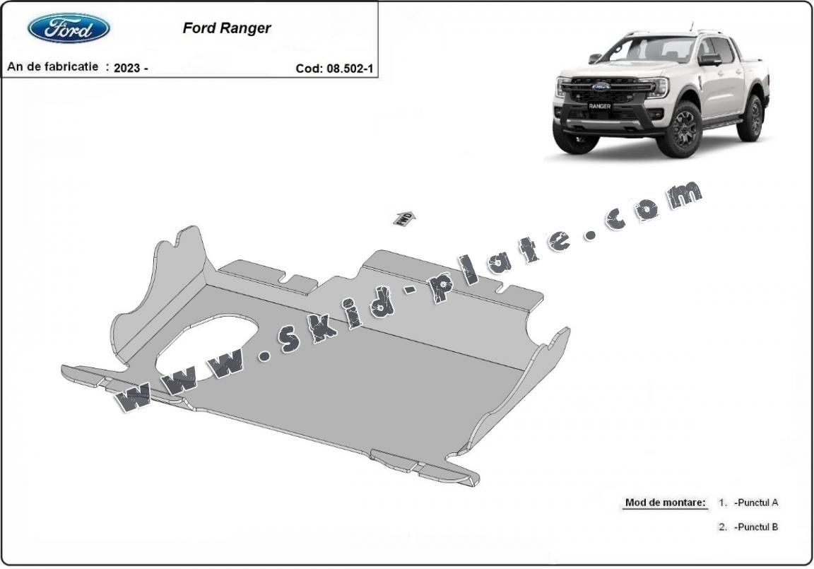 Skid plate for the protection of the: engine The skid plate is new and fits perfectly for all versions of Ford Ranger manufactured between 2023 and 2026. Made out of 3 mm thick Steel plate. Screws, nuts, clips, all fastening accessories are included. All skid plates are powder coated to prevent corrosion. The exterior of the skid plate is provided with Steel reinforcements, which increases the resistance to impact. |