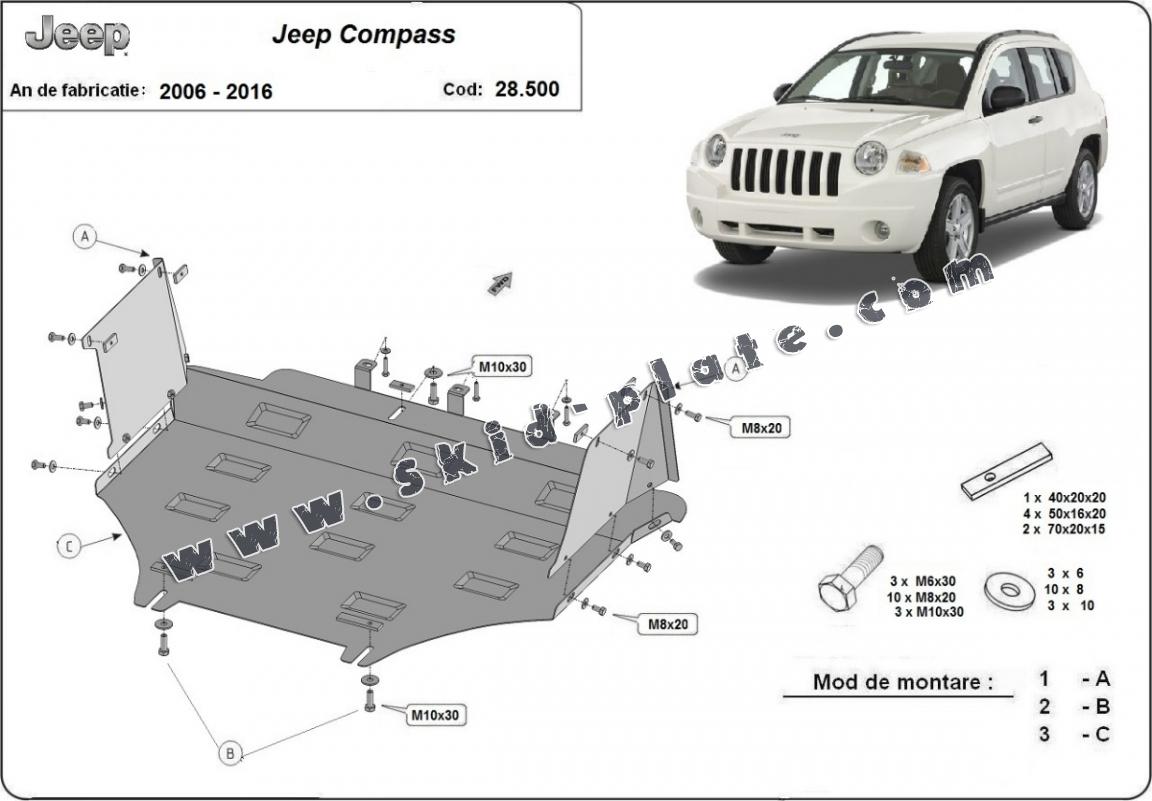 The skid plate is new and fits perfectly for all versions of Jeep Compass manufactured between 2006 and 2016.