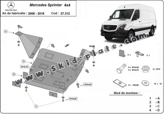 | The skid plate is new and fits perfectly for the Mercedes Sprinter 4x4, with the following engine/drive versions: 4x4 - manufactured between 2006 and 2018. |