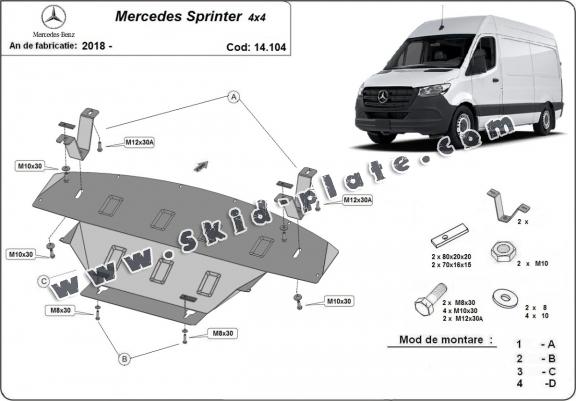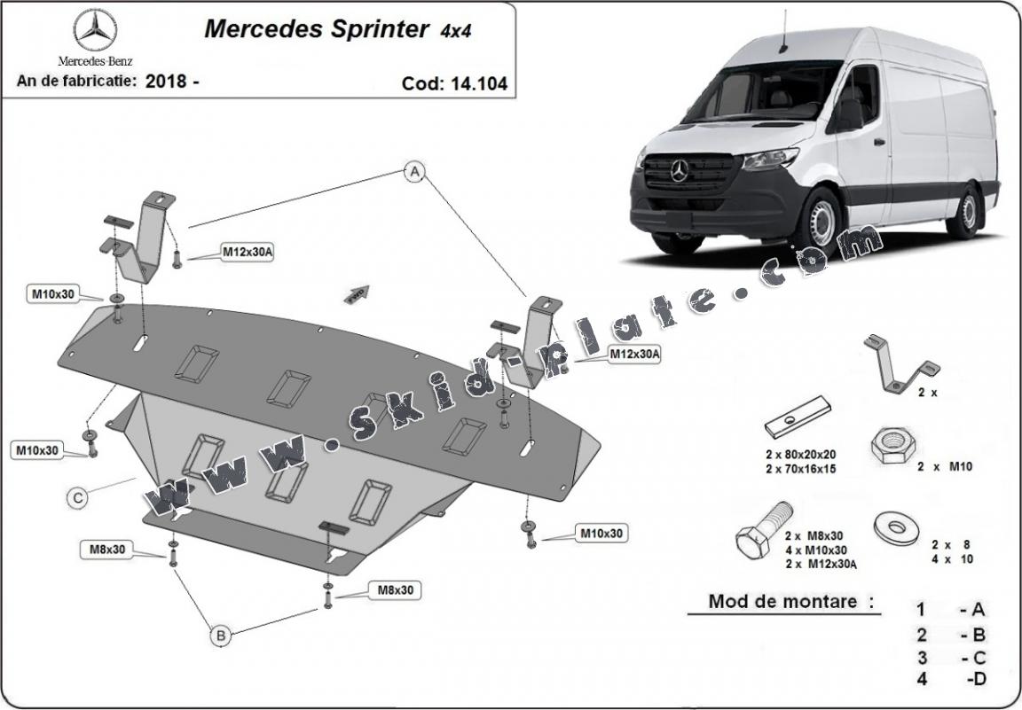 The skid plate is new and fits perfectly for the Mercedes Sprinter 4x4, with the following engine/drive versions: 4x4 - manufactured between 2018 and 2023.