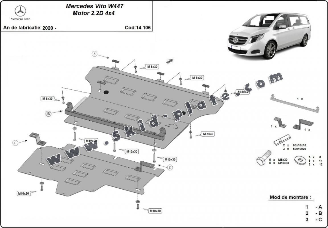 Steel skid plate for Mercedes Vito W447, 2.2 D, 4x4 (2020-2026)