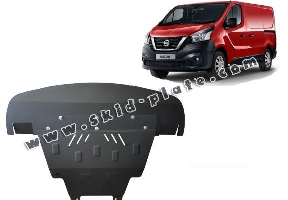 Skid plate for the protection of the: engine, gearbox, radiator, front bumper The skid plate is new and fits perfectly for all versions of Nissan NV300 manufactured between 2014 and 2021. Made out of 2 mm thick Steel plate. Screws, nuts, clips, all fastening accessories are included. All skid plates are powder coated to prevent corrosion. The exterior of the skid plate is provided with Steel reinforcements, which increases the resistance to impact. |