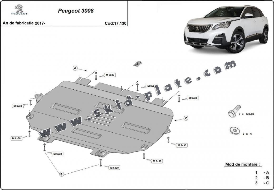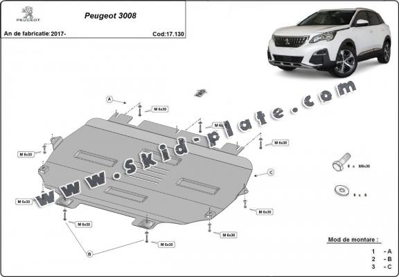 Steel skid plate for the protection of the engine and the gearbox for Peugeot 3008 (2017-2026)