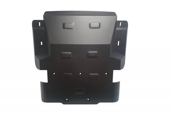Skid plate for the protection of the: engine, radiator, front bumper The skid plate is new and fits perfectly for all versions of Ssangyong Musso Grand manufactured between 2018 and 2026. Made out of 2 mm thick Steel plate. Screws, nuts, clips, all fastening accessories are included. All skid plates are powder coated to prevent corrosion. The exterior of the skid plate is provided with Steel reinforcements, which increases the resistance to impact. |