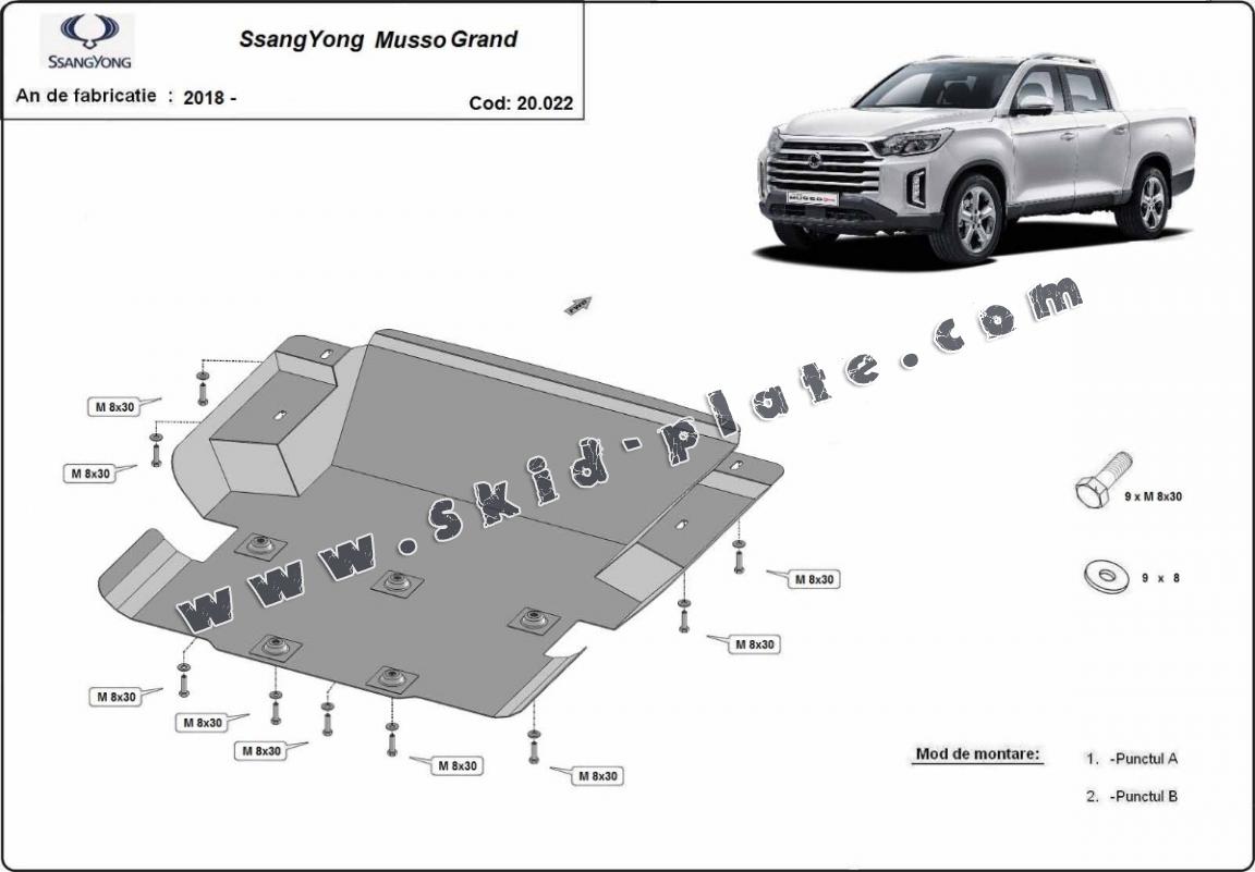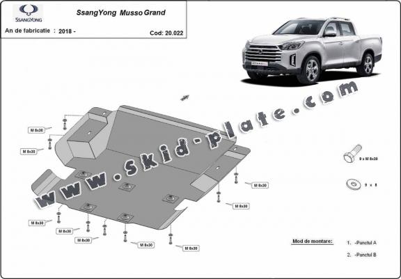 Steel skid plate for Ssangyong Musso Grand (2018-2026)