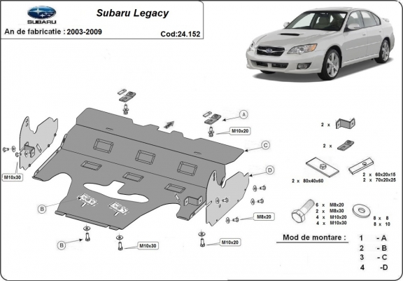 Steel skid plate for Subaru Legacy IV (2003-2009)