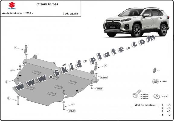Skid plate for the protection of the: engine, gearbox, radiator The skid plate is new and fits perfectly for all versions of Suzuki Across manufactured between 2020 and 2026. Made out of 2 mm thick Steel plate. Screws, nuts, clips, all fastening accessories are included. All skid plates are powder coated to prevent corrosion. The exterior of the skid plate is provided with Steel reinforcements, which increases the resistance to impact. |