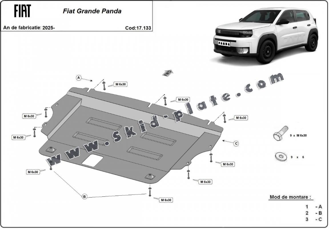 Steel skid plate for the protection of the engine and the gearbox for Fiat Grande Panda (2025-2026)