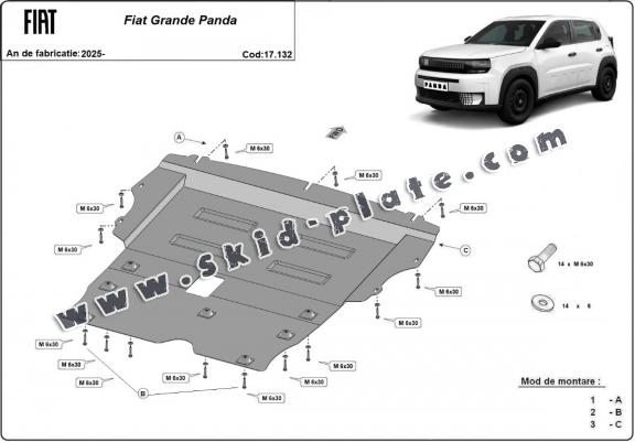 Steel skid plate for the protection of the engine and the gearbox for Fiat Grande Panda (2025-2026)