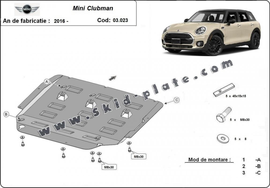 Steel skid plate for the protection of the engine and the gearbox for Mini Clubman