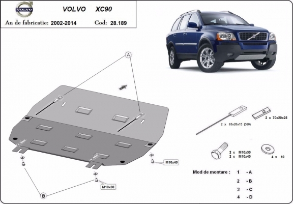 Skid plate for the protection of the: engine, gearbox, radiator The skid plate is new and fits perfectly for all versions of Volvo XC90 manufactured between 2002 and 2014. Made out of 2 mm thick Steel plate. Screws, nuts, clips, all fastening accessories are included. All skid plates are powder coated to prevent corrosion. The exterior of the skid plate is provided with Steel reinforcements, which increases the resistance to impact. |