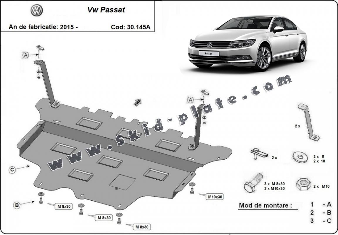 Steel skid plate for VW Passat B8 - automatic gearbox (2015-2026)