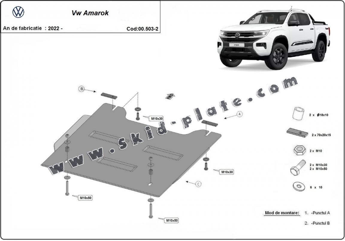 Steel transfer case skid plate for Volkswagen Amarok 2 (2022-2026)